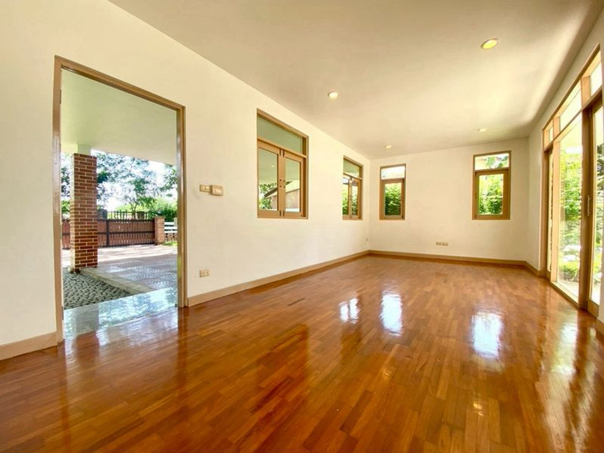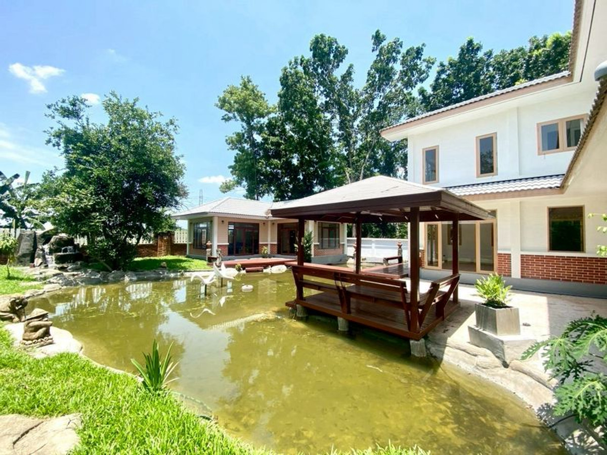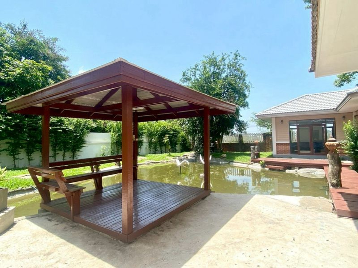 บ้านเดี่ยวสไตล์รีสอร์ท บนพื้นที่ 200 ตารางวา ตัวบ้านหลักมี 3 ห้องนอน 3 ห้องน้ำ พร้อมเรือนรับรองอีก 1 หลัง ภายในมีน้ำตกและน้ำพุสวยงาม ศาลาริมน้ำ บรรยากาศร่มรื่น โปร่งโล่ง เหมาะกับผู้ที่ชอบความเป็นส่วนตัวและความสงบ ตัวบ้านตกแต่งอย่างอบอุ่นพร้อมเข้าอยู่
