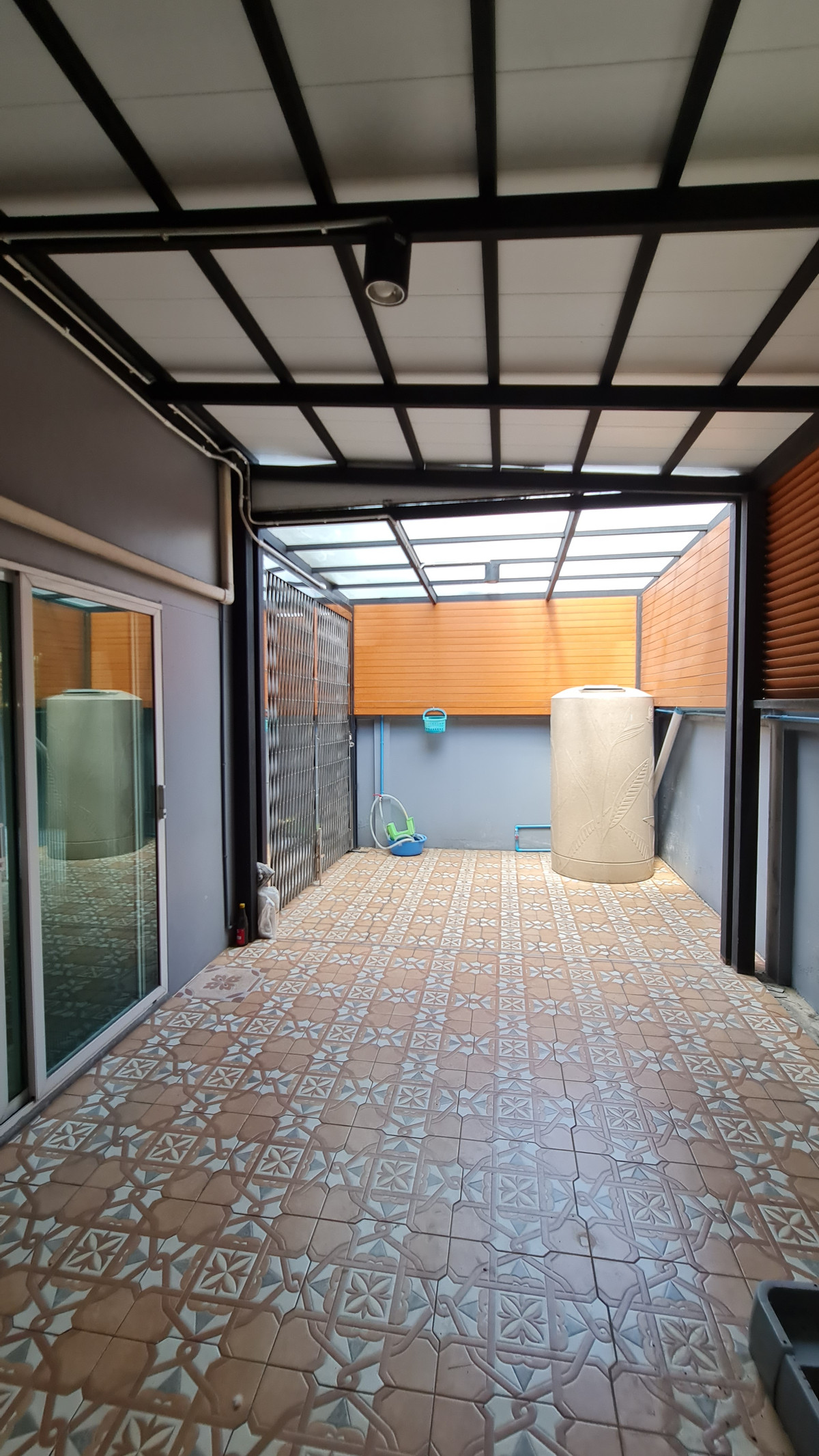 • ต่อเติม: โรงจอดรถ, หลังคาข้างบ้าน, ครัวไทยหลังบ้าน (ปูกระเบื้อง) จอดรถได้ 2 คัน
