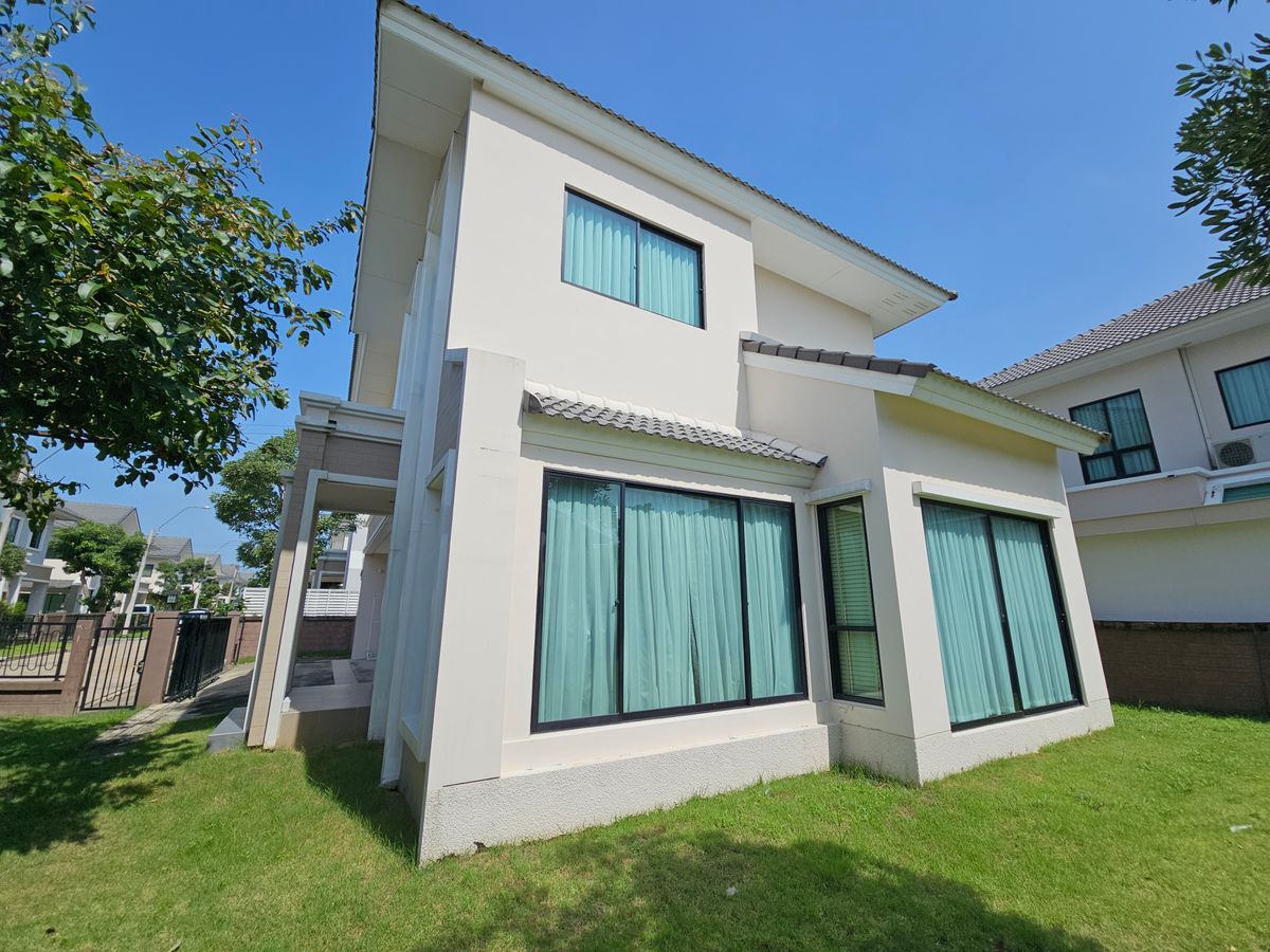 จุดเด่น : การเดินทางสะดวก, บ้านหลังริมในพร้อมพื้นที่ข้างบ้านกว้างสามารถต่อเติมเรือนรับรองหรือสร้างสระว่ายน้ำได้, บ้านเดี่ยวสไตล์อังกฤษ โครงการของ Q House, แบบบ้าน Whiston Type, โครงสร้างก่อด้วยอิฐฉาบปูน