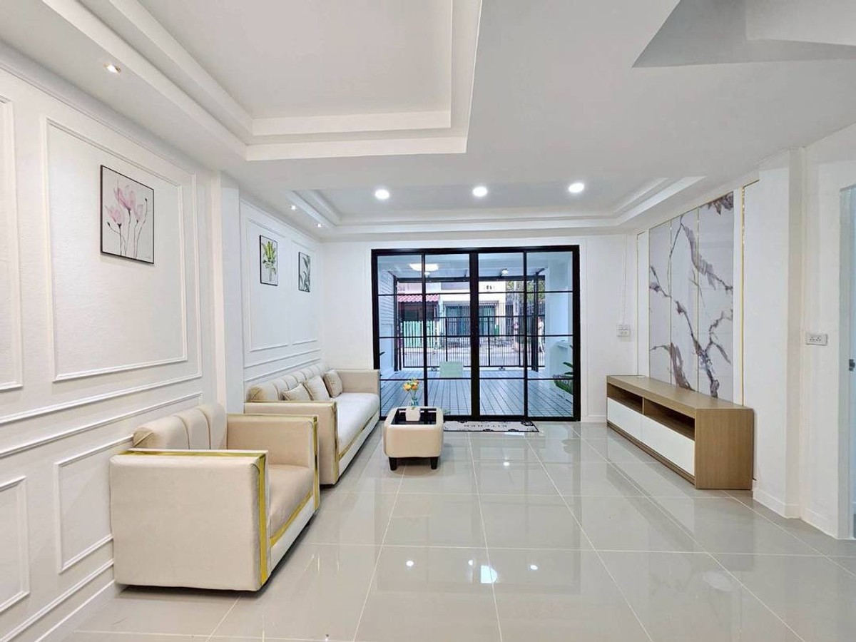 Urgent sale! 2-story townhouse on the edge of a wide area. Phra Pin Village 3, prime location next to Kanchanaphisek main road, area 32 sq m, newly renovated, 5 bedrooms, with side area and complete set of extras. Convenient travel, close to the BTS and m